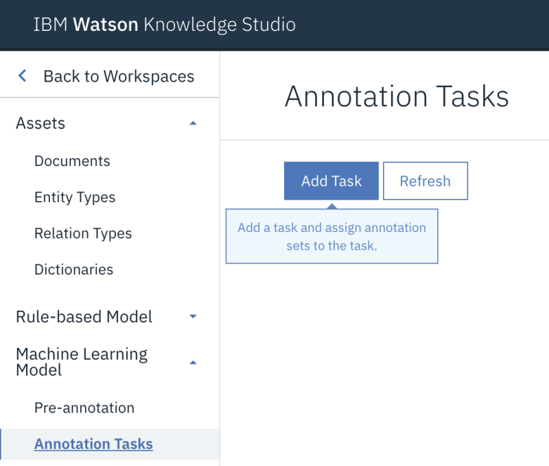 Nu we voorbeelddata hebben geladen en het systeem hebben verteld wat het willen laten herkennen, kunnen we taken aanmaken om als expert het systeem gaan trainen.