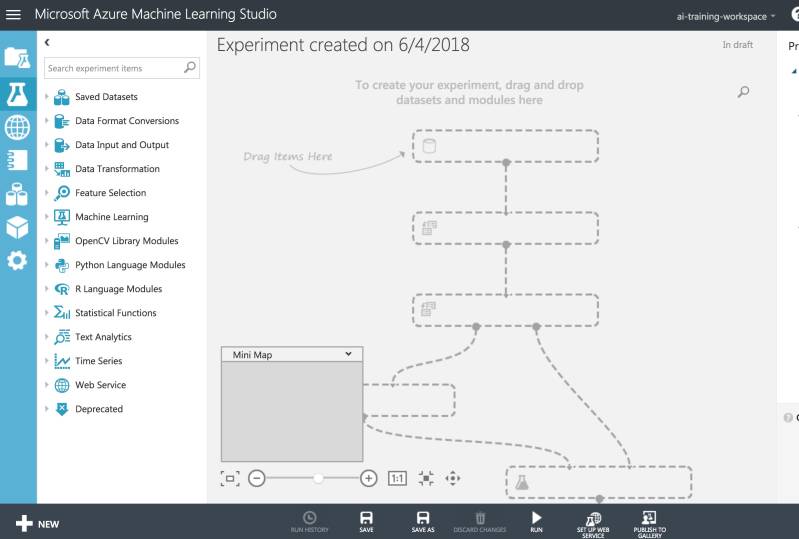 Via drag en drop kun je items op het canvas slepen. We maken het model dus zonder te moeten programmeren of de vaardigheden van een data scientist te hebben.