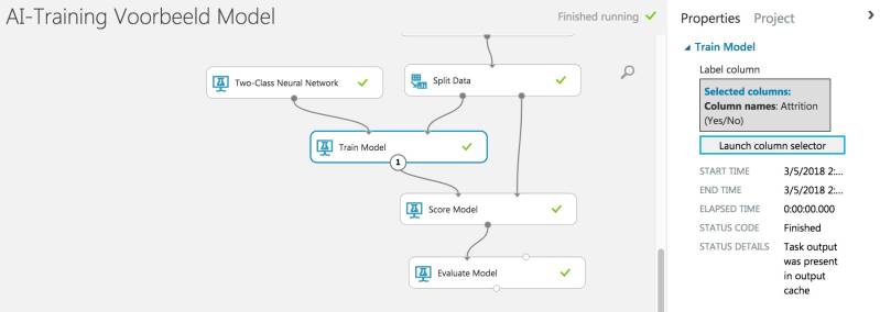 En verbind het met 'Train Model' zodat het er uitziet zoals in het screenshot hiernaast.