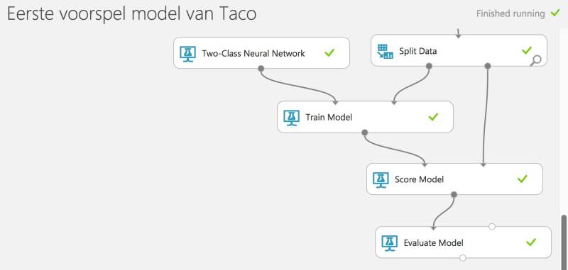 De data zal deze stappen doorlopen van boven naar beneden. Waarbij in de stap 'Train Model' het model gemaakt wordt.