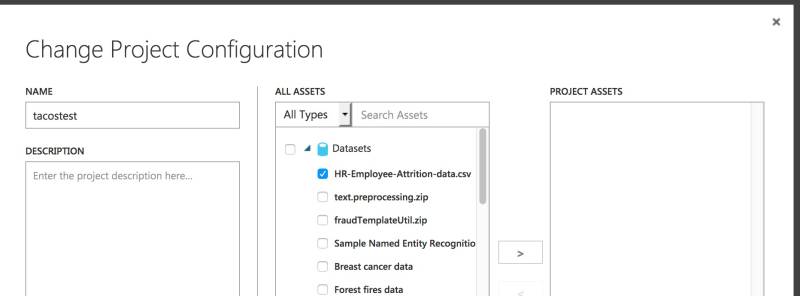 - In het scherm 'Change Project Configuration', selecteer je de dataset 'HR-Employee-Attrition-data.csv'.